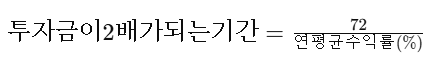 아이슈타인이 극찬한 복리의 개념을 쉽게 이해하는 방법 중 하나가 72의 법칙이다. 이 법칙은 투자금이 두 배가 되는 대략적인 기간을 계산하는 공식으로, 다음과 같은 형태를 가진다.
